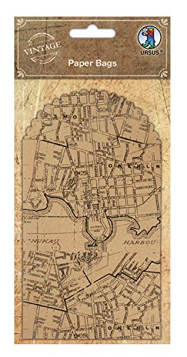 Papperspåsar, presentpåse av papper tryckt med gammalt stadskort, 6 st. 8,8 x 13,4 cm stor