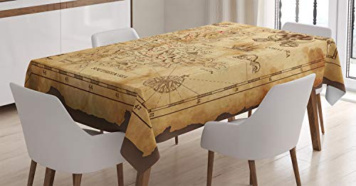 ABAKUHAUS Ö Bordsduk, Gammalt papper Treasure Map, rektangulärt bordsskydd för matsal köksdekor, 140 cm x 170 cm, beige Brown