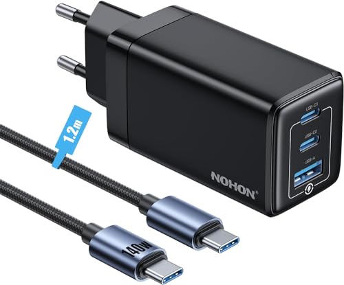 NOHON USB-C-laddare Snabbladdning: 65W GAN 3-Port PD3.0 Laddare | USB C-kontakt med 140W Typ C-kabel 1.2M | Kompatibel med MacBook Pro Air Airpods iPad iPhone 15 14 13 12 11 Samsung Galaxy S