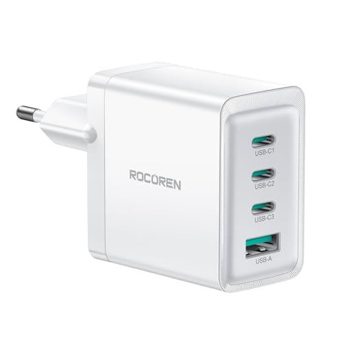 Rocoren 67W USB C-laddare för MacBook Pro 13, 14, 15, 16 tum, MacBook Air 2020, 2019, 2018, 4-port GaN snabbladdare Kompatibel med iPad Pro 12.9, 11 tum, iPhone 15, Galaxy S24 Ultra