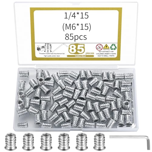 85 stycken gänginsatser, insexkantsmutter träskruvar muttrar, skruvmuttrar, gänghylsa, sexkantsmuttrar av för trämöblerr, 1/4 tums inskruvningsmuttrar
