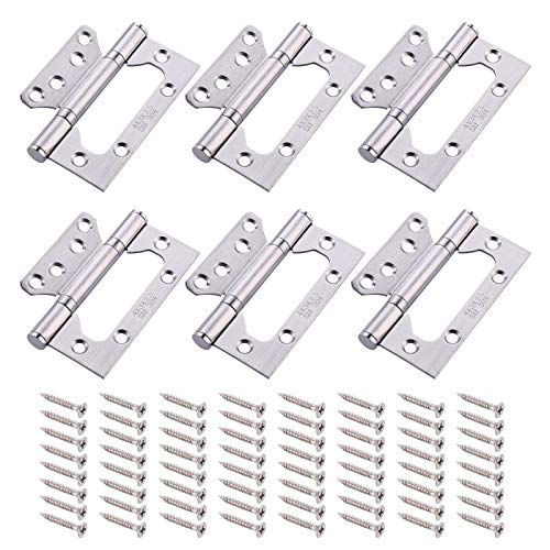 JIZZU 304 rostfritt stål gångjärn, 6 stycken gångjärn rostfritt gångjärn med 64 st skruvar rostfritt stål ytterdörrgångjärn för garderob, 10 x 6 cm silver