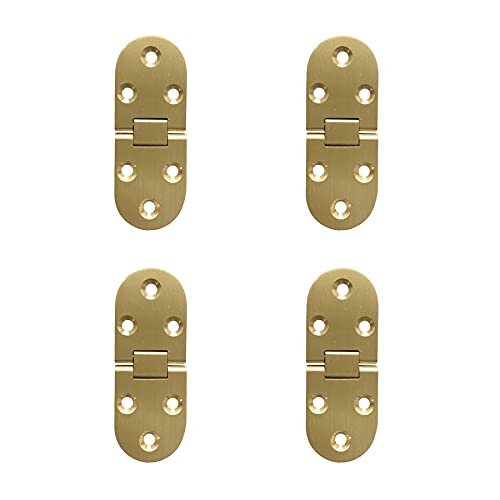 LIKERAINY 180° Flip Fällbart Gångjärn i Mässing Rund Kant med Skruvar Gångjärn för Fällbara Bordsskåp Garderobsdörrar Timmer Trälåda Antirosttålig Kopparpolering 4pcs