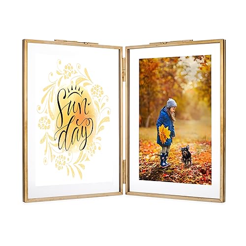 Lawrence ramar antik mässing 12,7 x 18,2 cm gångjärn dubbel bildram – pärlkantsdesign, satin guld