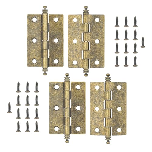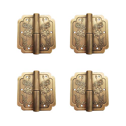 MABAHON 4 st antika gångjärn vikbara brons gångjärn retro mässing dörrgångjärn med 26 st gångjärnsskruvar för skåp, skåpdörrar, retro smyckeskrin, byrå lådor