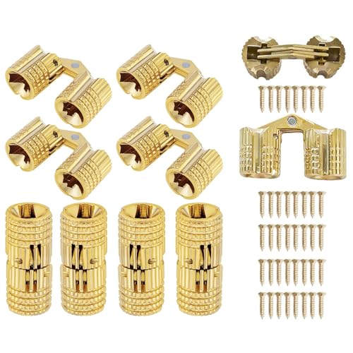 Nikou 4 delar/paket mässing dold - skaft gångjärn osynligt dolda koppar gångjärn möbelgångjärn för gör-det-själv trädörr presentlådor smyckeskrin handhantverk guld, 180° öppningsvinkel