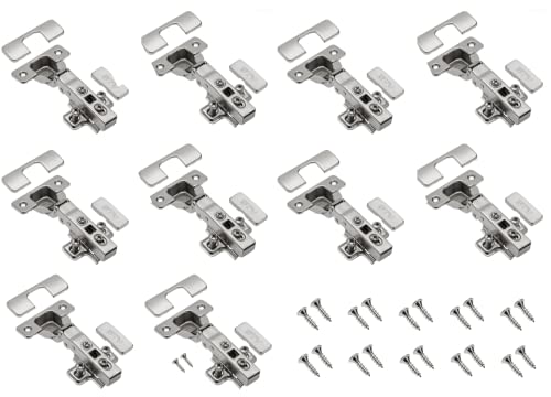 GTV – 10 x hydrauliskt gångjärn ECHC, överlappbart – gångjärn med dämpning – hörnstopp – monteringsplatta H=0 med euroskruvar – tyst stängning – möbelgångjärn krukgångjärn skåpdörrgångjärn