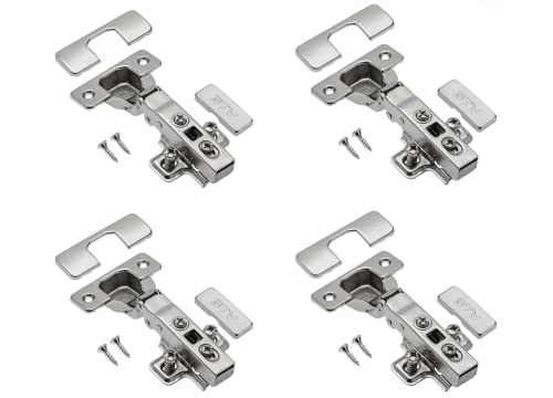 GTV – 4 x hydrauliskt gångjärn ECHC, överlappbart – gångjärn med dämpning – hörnstopp – monteringsplatta H=0 med euroskruvar – tyst stängning – möbelgångjärn krukgångjärn skåpdörrgångjärn