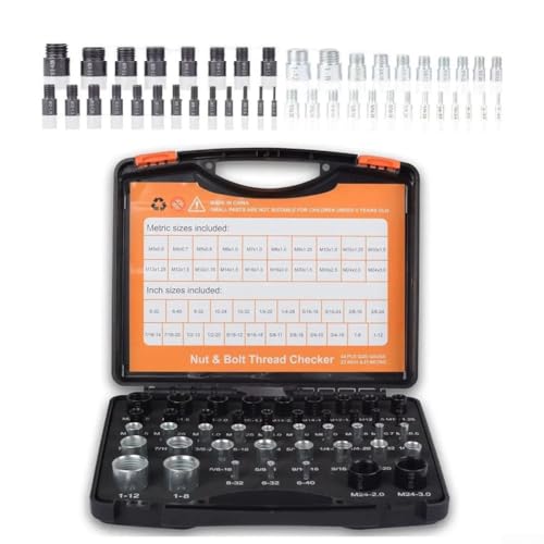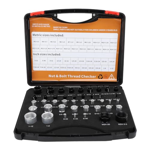 44 Hane Hona Bultstorlek och Gängmätare, Mutter och Bultgänga Kontrollbox (23 Tum & 21 Metriska) Bult- och Muttermätare för Att Känna Igen Storlek på Knepigt och Smalt Område