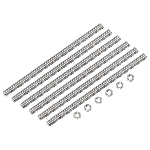 QUARKZMAN 6-pack M6 x 200 mm hel gängstång med 6 pack sexkantiga muttrar 1 mm gänga avstånd 304 rostfritt stål högerhänta gängstänger stavar stavar