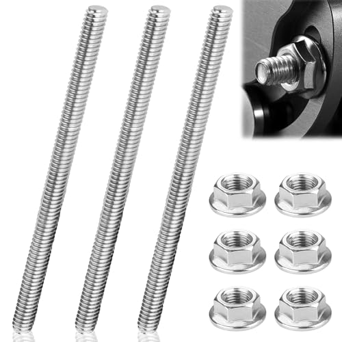 Gängstänger M12 x 30 cm gängstång rostfritt stål 3 hel gängstång med 6 flänsmuttrar för maskiner och möbeltillverkning (M12 x 30 cm)
