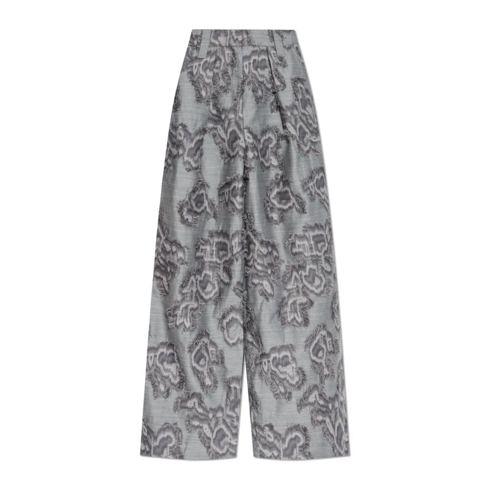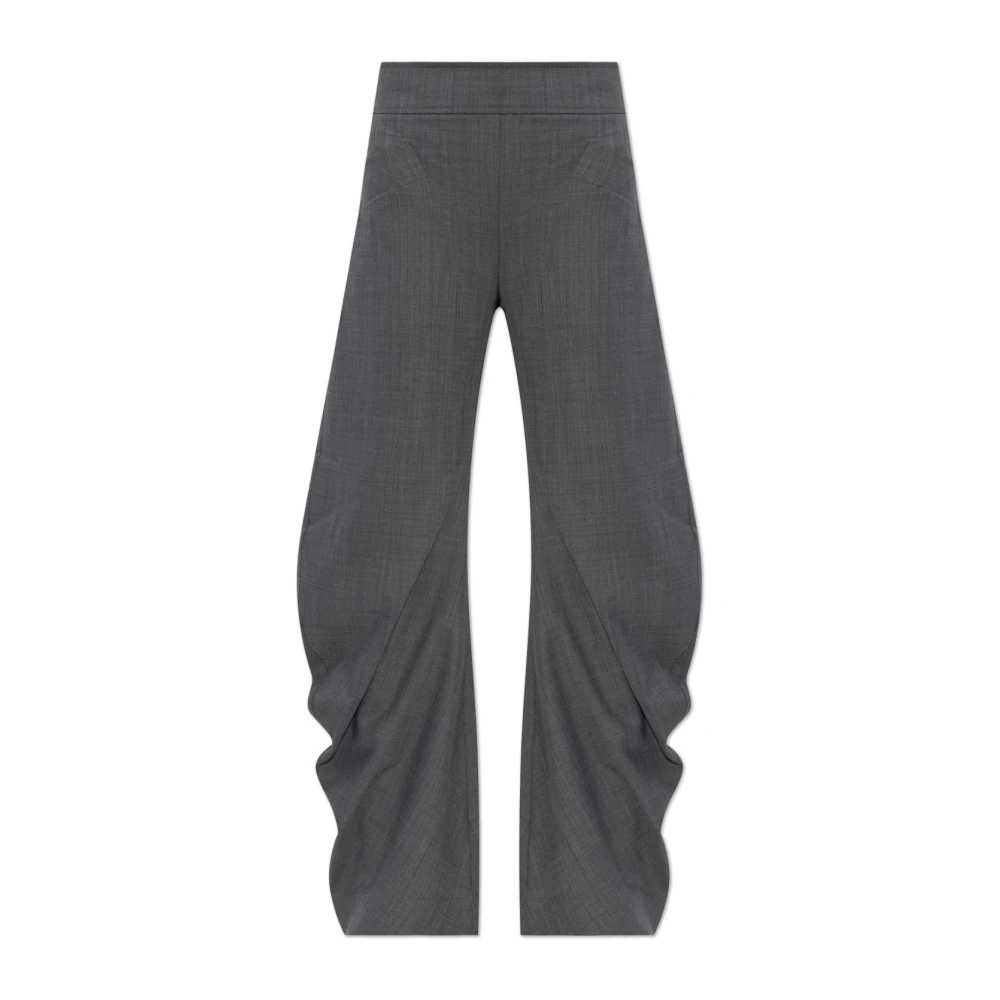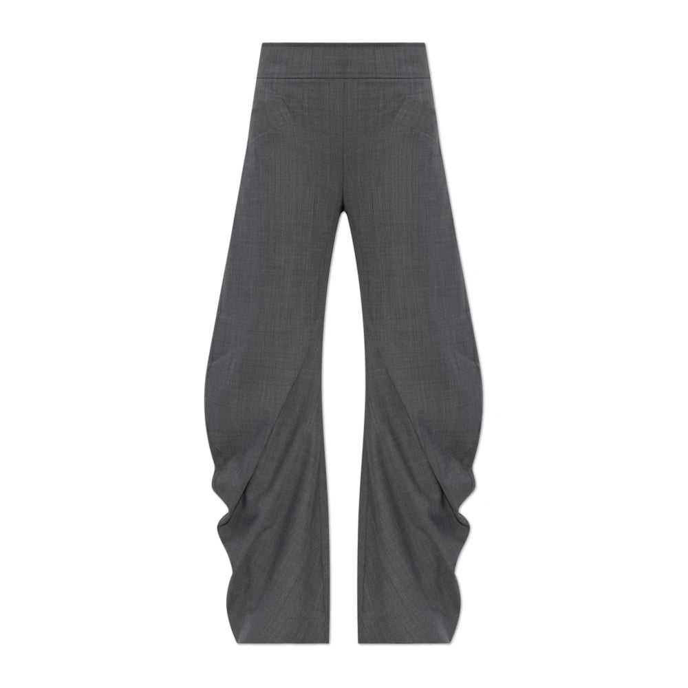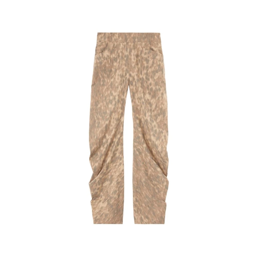 Ganni, Byxor , Dam, L, Polyester, Draperade Melange Byxor med Mellanhög Midja