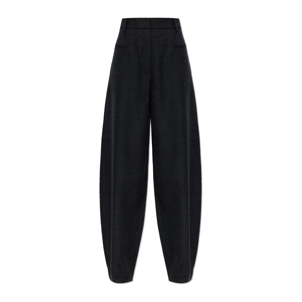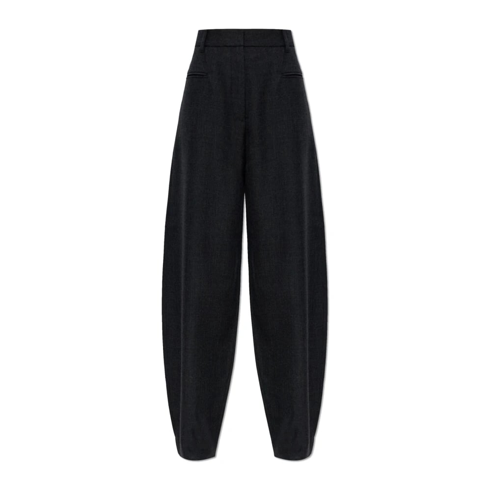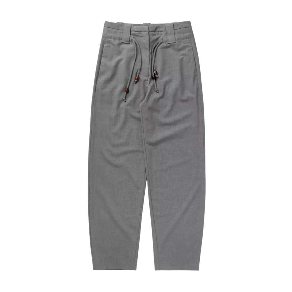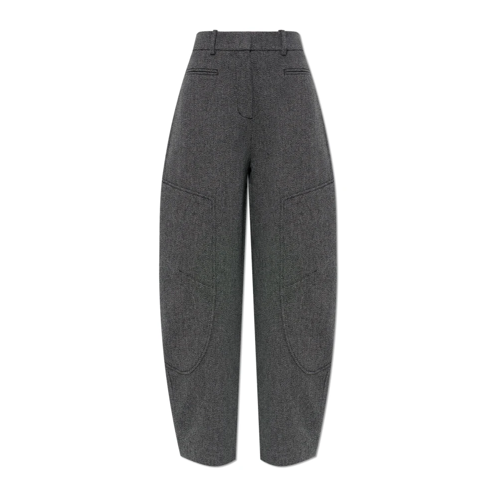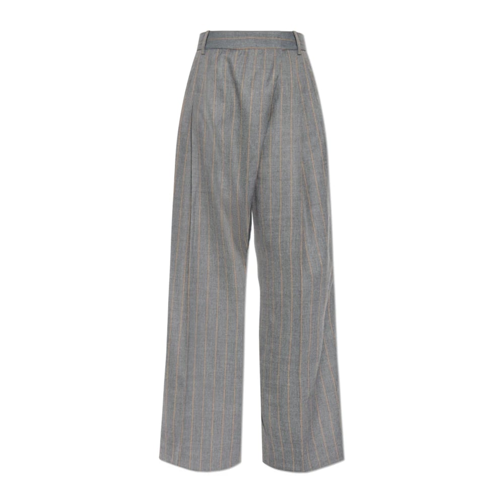 Ganni, Byxor , Dam, L, Polyester, Draperade Melange Byxor med Mellanhög Midja