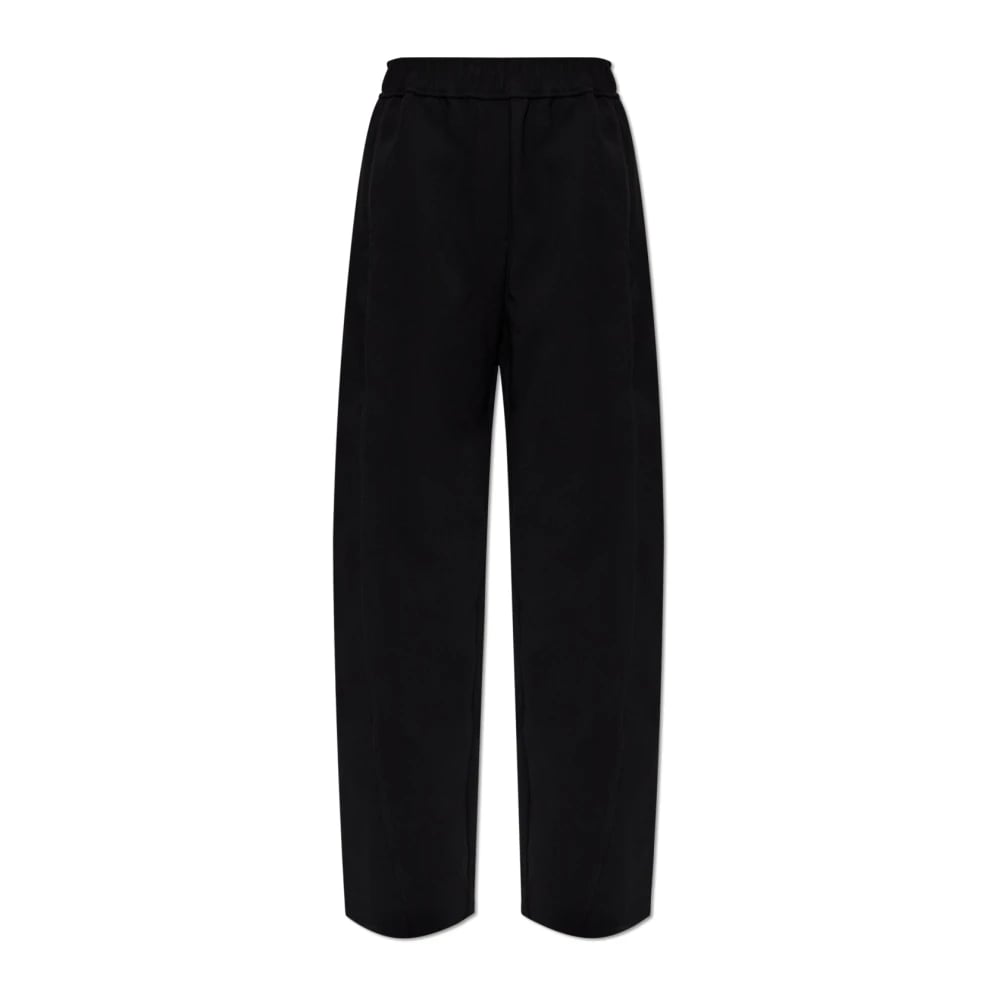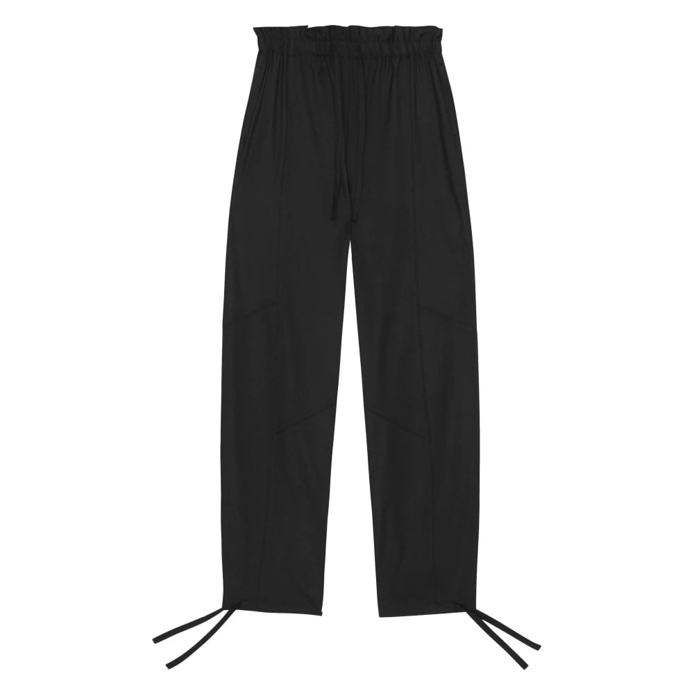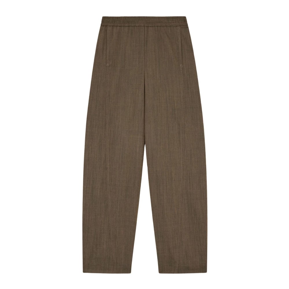 Ganni, Byxor , Dam, S, Drapey Melange Byxor med Elastisk Midja