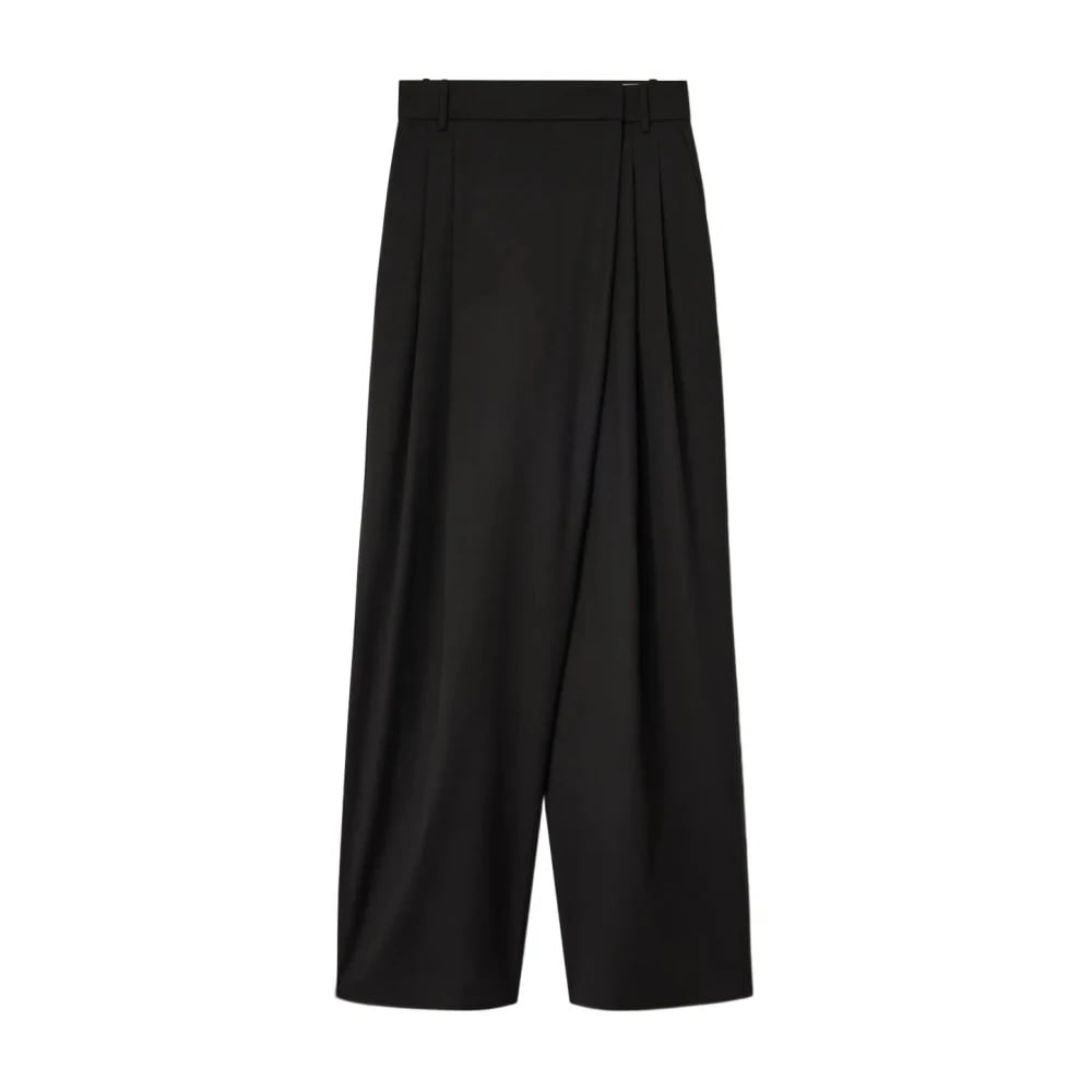 Ganni, Byxor , Dam, M, Drapey Melange Byxor med Elastisk Midja
