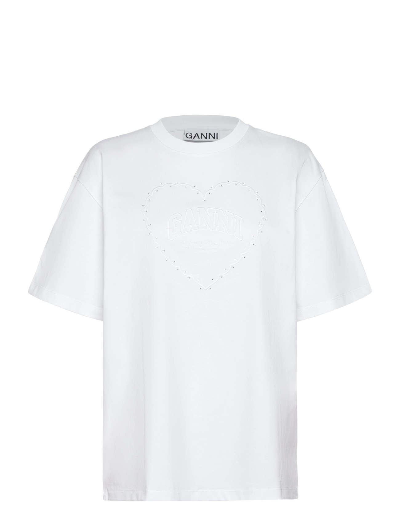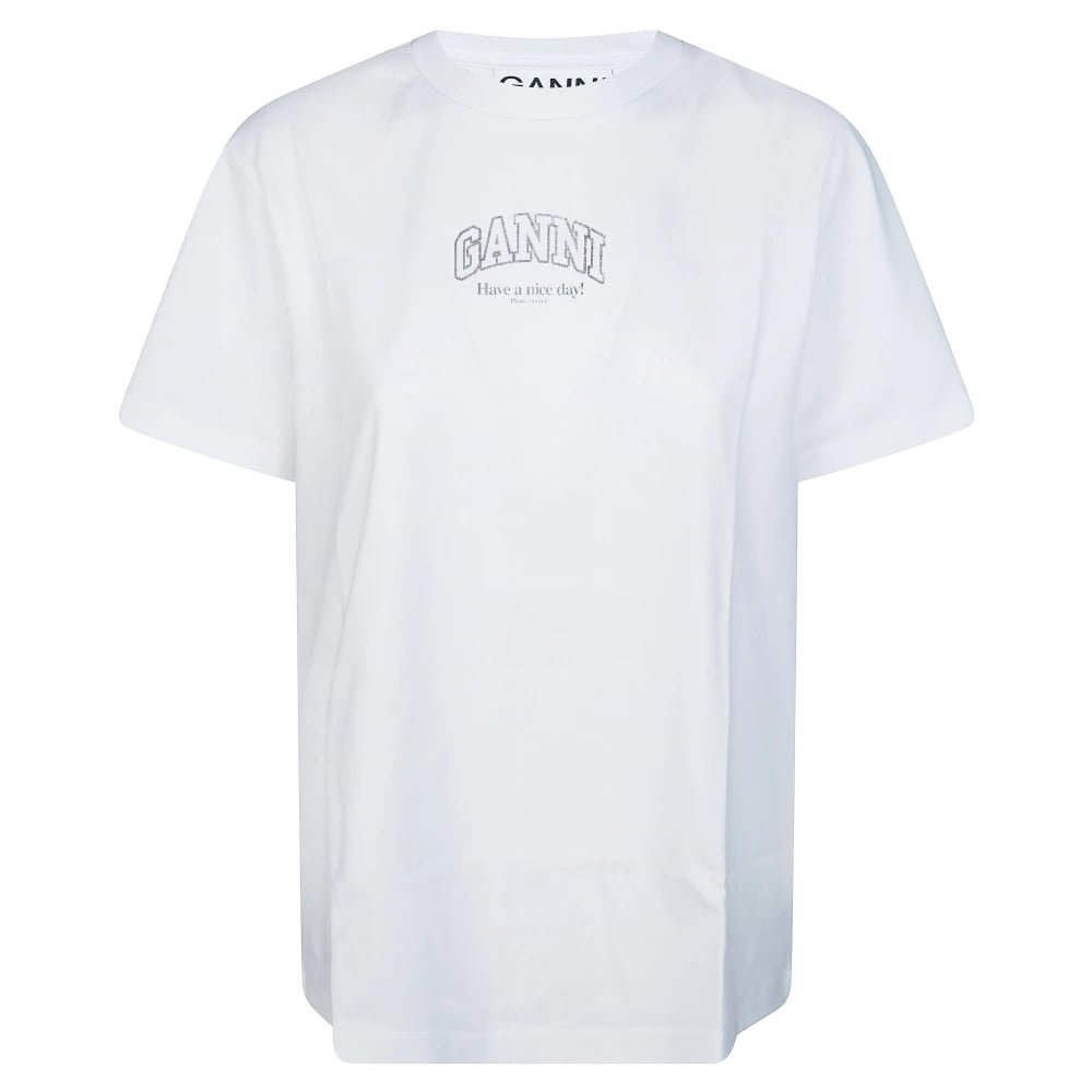 GANNI Basic Jersey Emballished Relaxed T-Shirt - White - XS