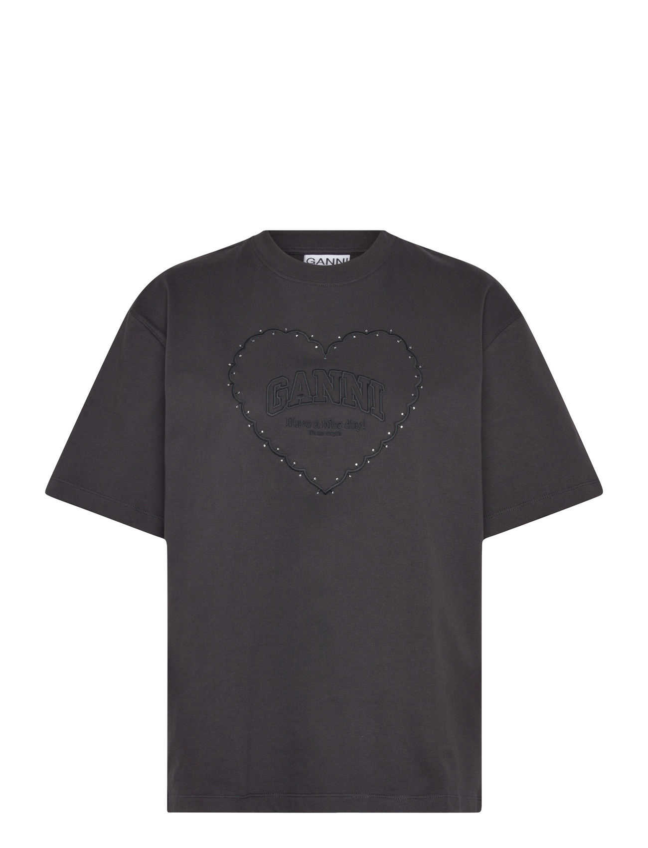 Ganni, Toppar , Dam, M, Bomull, Heavy Cotton Drop Shoulder Heart T-shirt