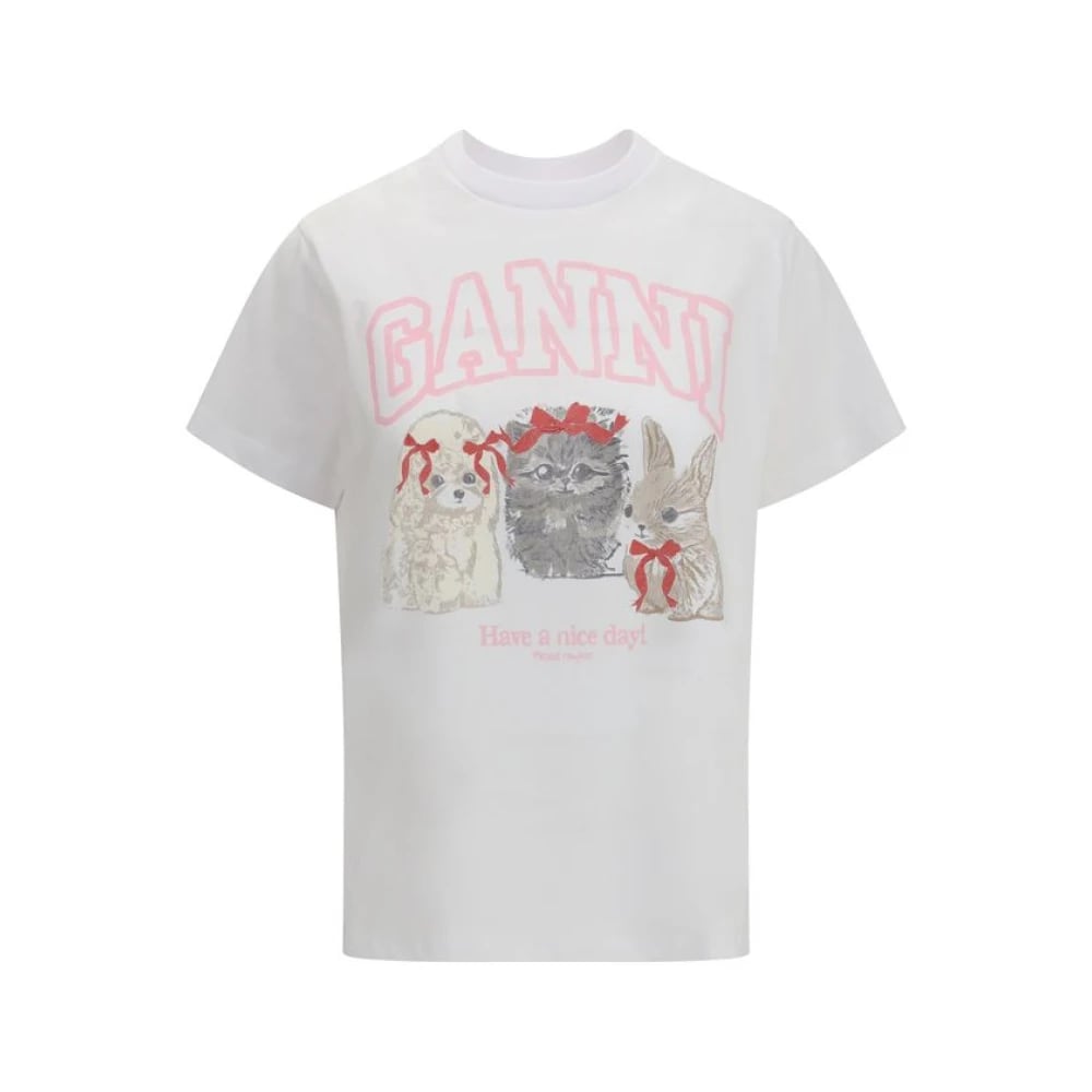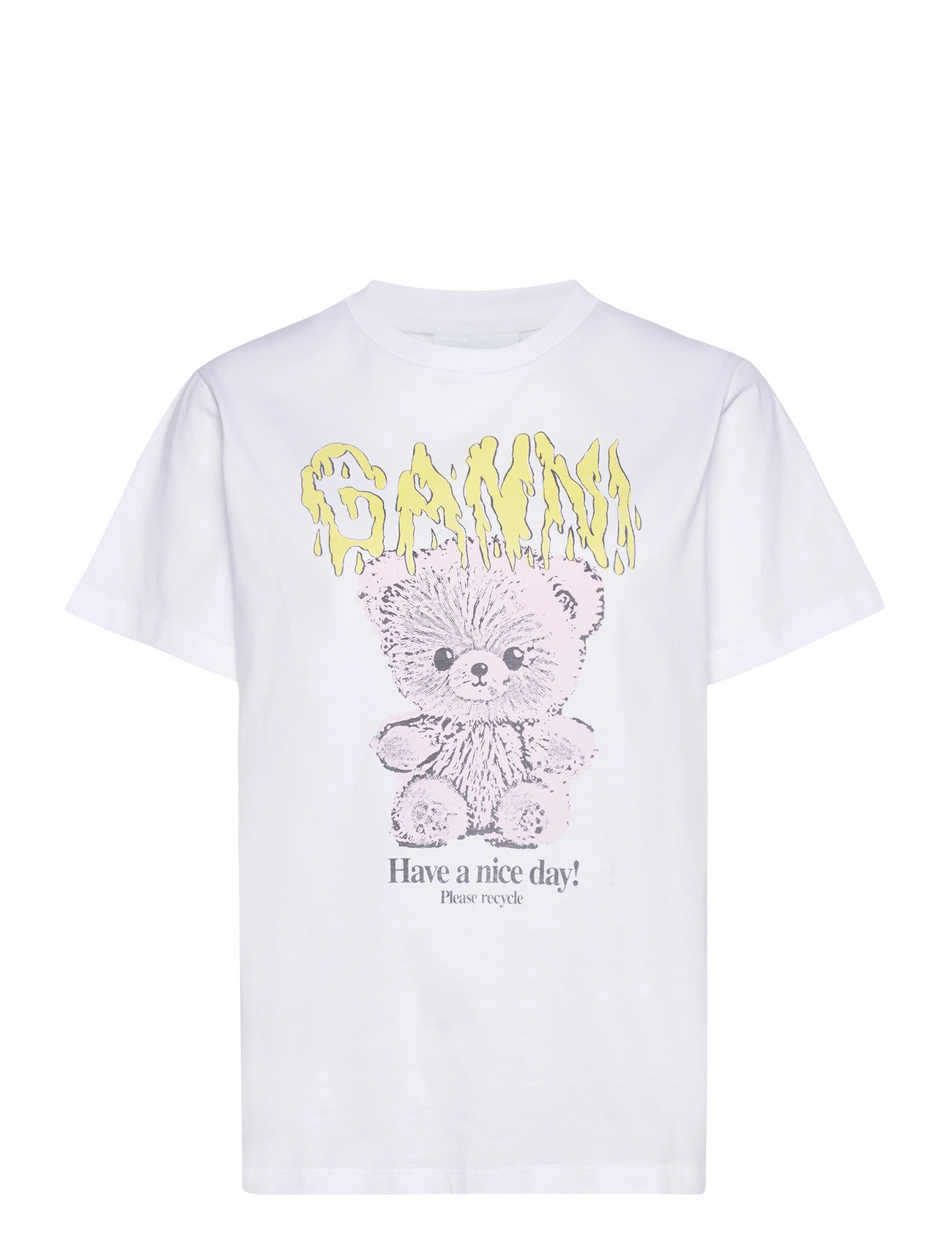 GANNI Teddy Print Cotton T-Shirt - White - S