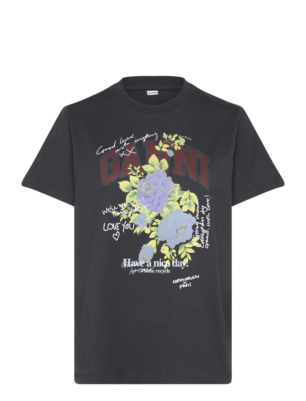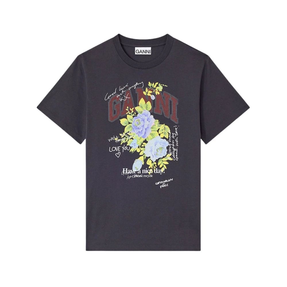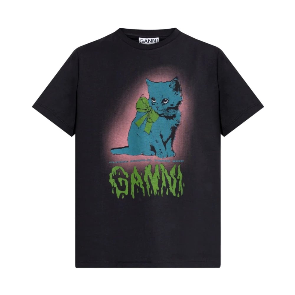 Ganni, Toppar , Dam, M, Mörkgrå Katt Grafisk T-shirt