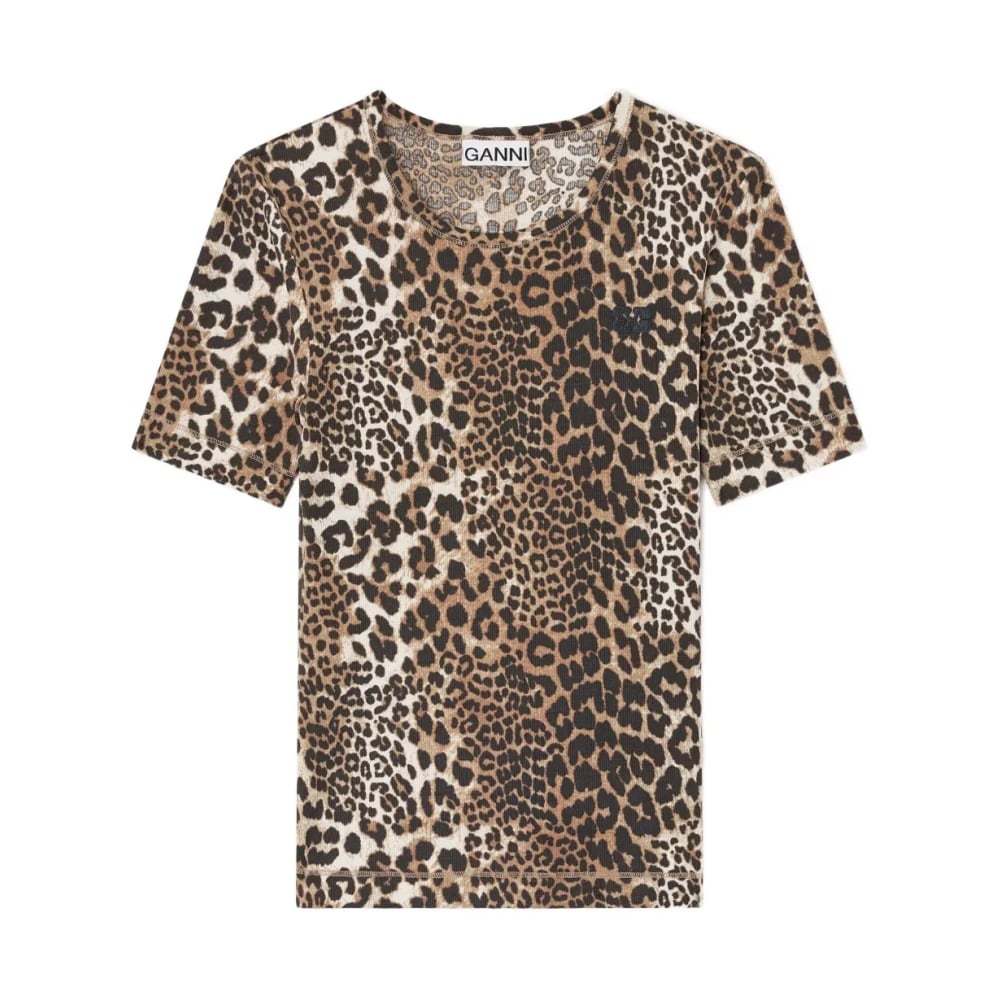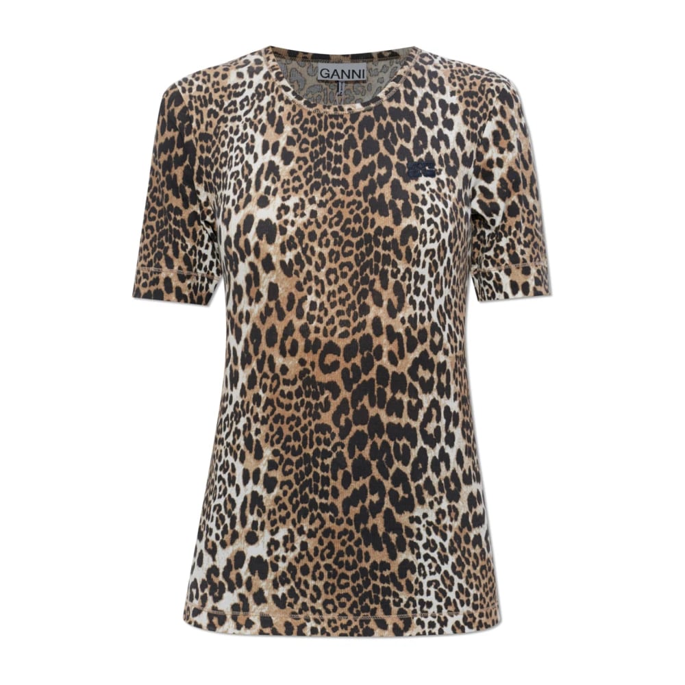 Ganni, Toppar , Dam, M, Bomull, Leopardmönstrad T-shirt