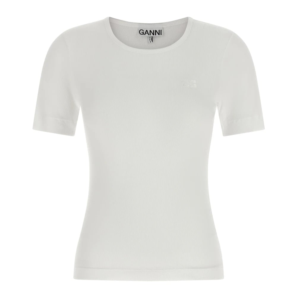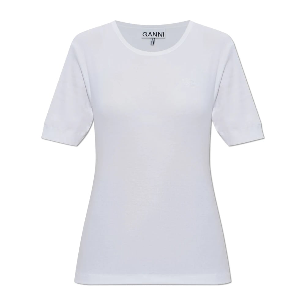 Ganni, Toppar , Dam, M, Bomull, Ribbad t-shirt med logotyp