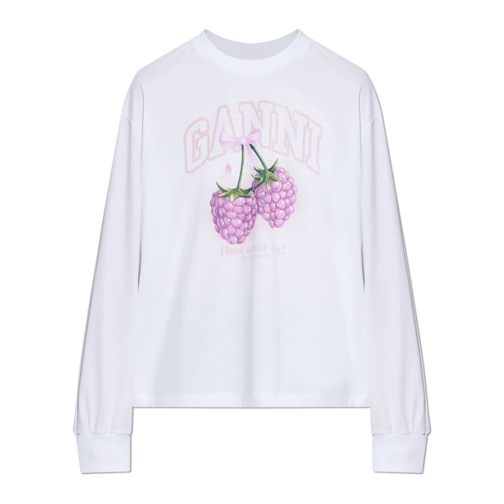 Ganni, Toppar , Dam, M, Bomull, Long Sleeve Fruit T-shirt