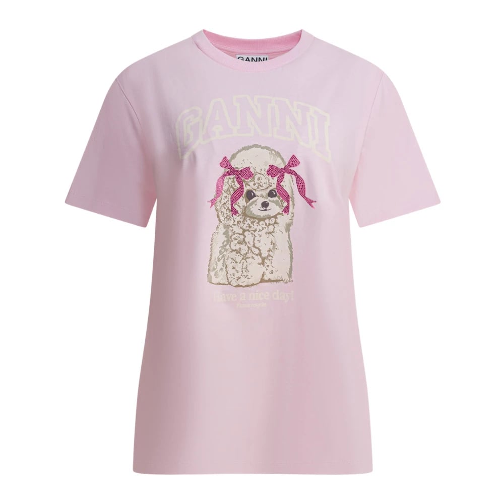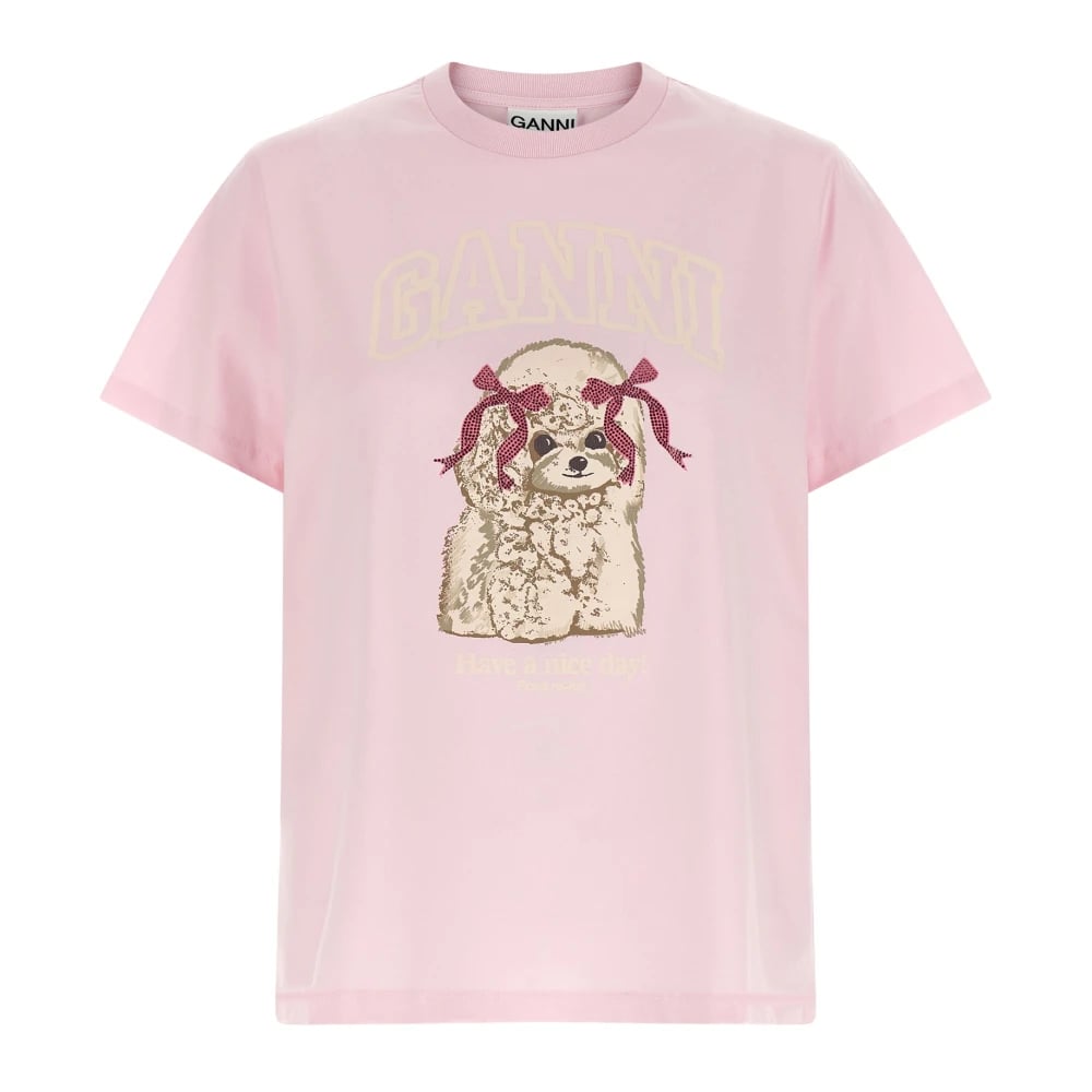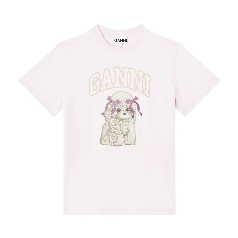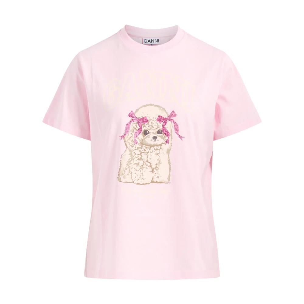 Ganni, Toppar , Dam, L, Bomull, Poodle Print T-shirt