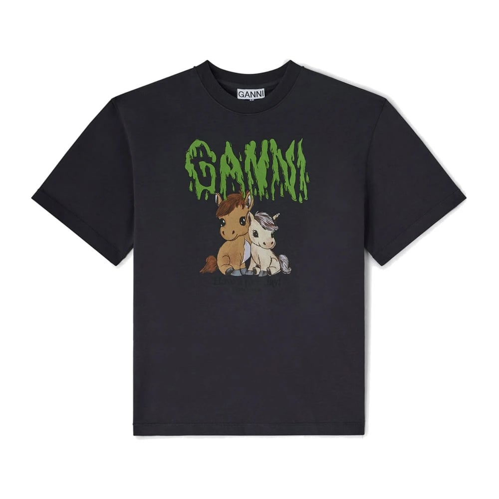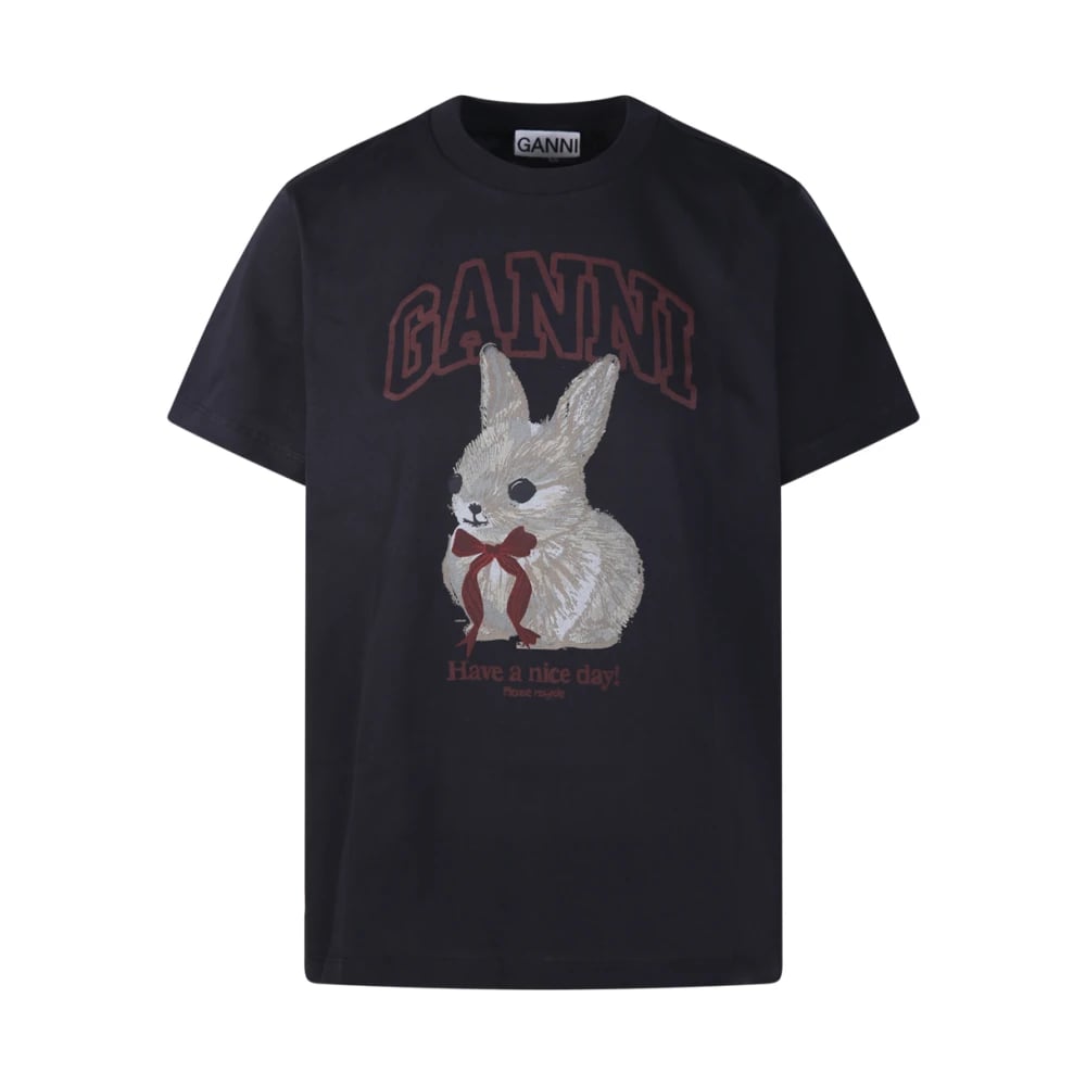 GANNI Graphic Print Crew Neck T-Shirt - Black - S