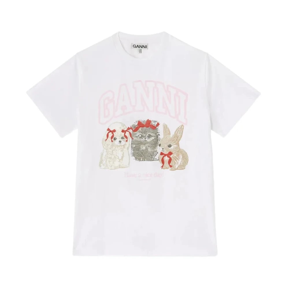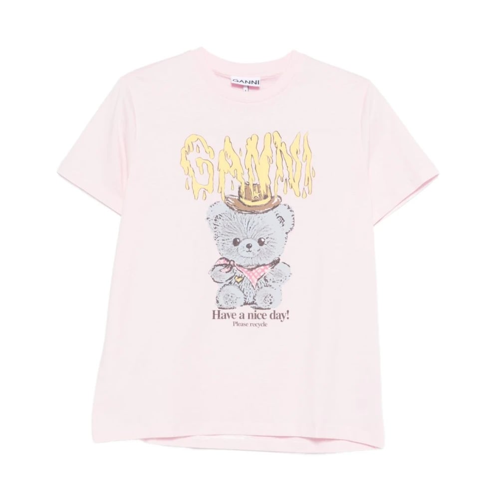 Ganni, Toppar , Dam, S, Bomull, Teddybjörn Tryck Grafisk T-shirt