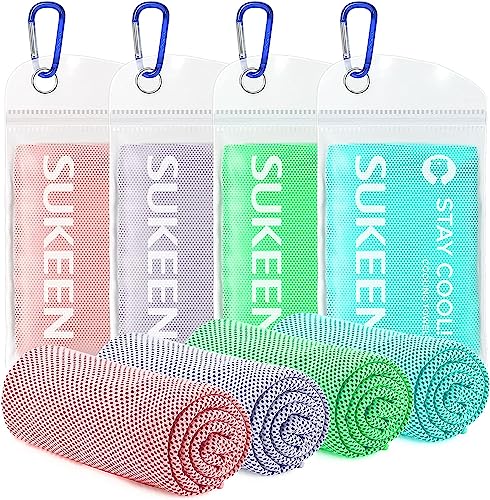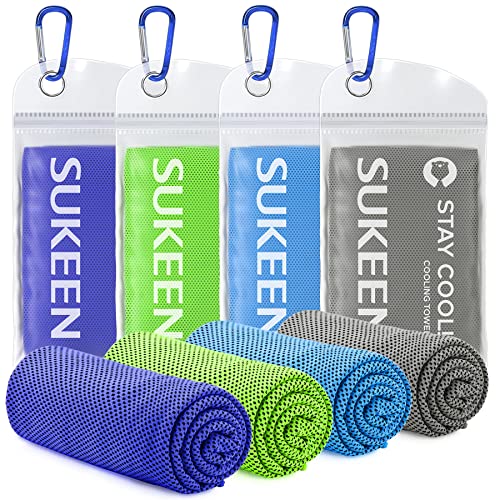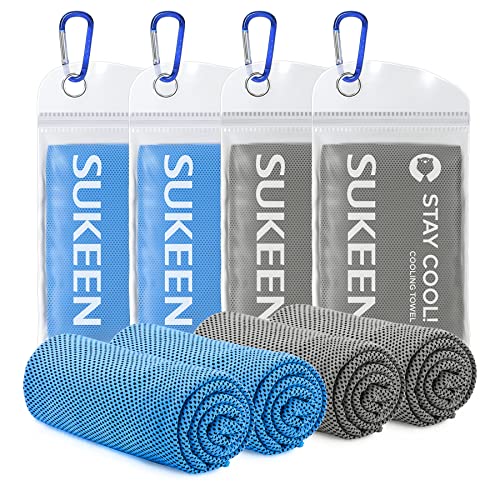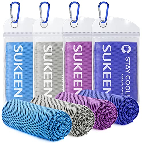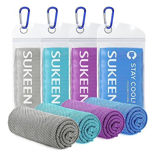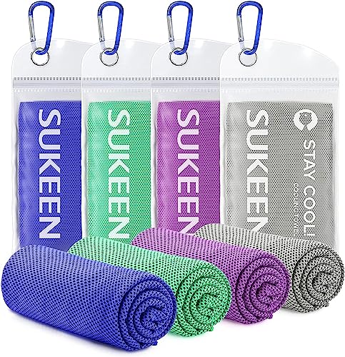 Sukeen [4-pack kylhandduk (101 cm x 30 cm), ishandduk, mjuk andningsbar kylig handduk, mikrofiberhandduk för yoga, sport, löpning, gym, träning, camping, fitness, träning och andra aktiviteter