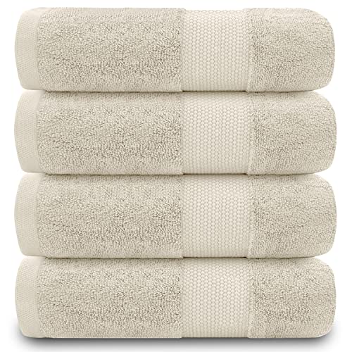 Gaveno Cavailia 700 GSM Handduk av högsta kvalitet, extra absorberande 4-pack 100% ringspunnen bomullshandduk, Egyptisk, kräm, 50 x 85 cm