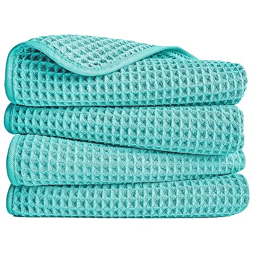POLYTE Mikrofiber luddfri handduk, 40 x 76 cm, 4-pack (Aqua, våffelväv)