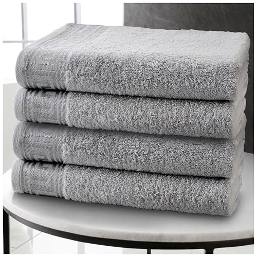 GC GAVENO CAVAILIA Snabbtorkande handduksset, 4-pack, premium högabsorberande handduk 100% egyptisk bomull, New Hampton, silver/grå