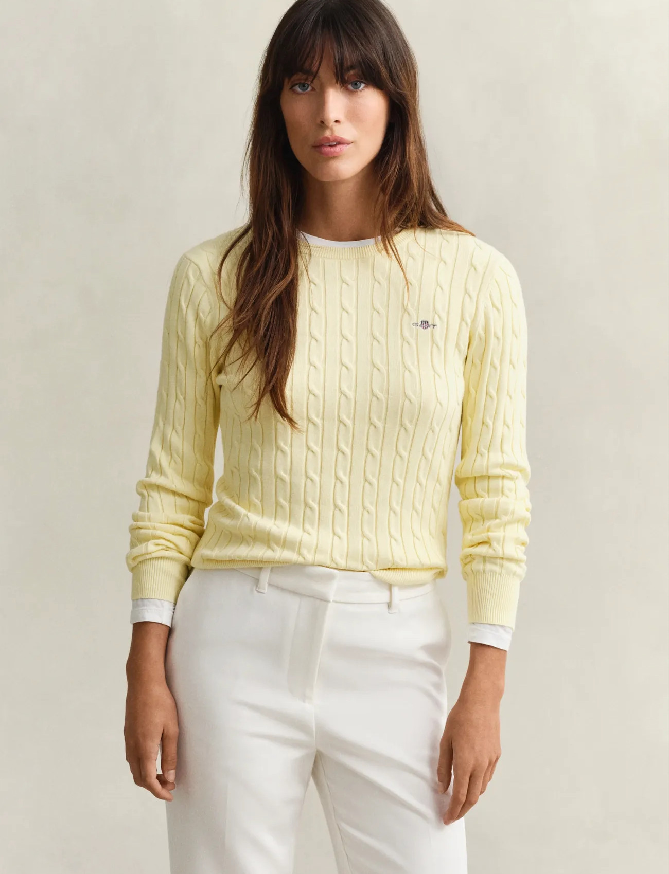 GANT Stretch Cotton Cable C-Neck - Beige - XS