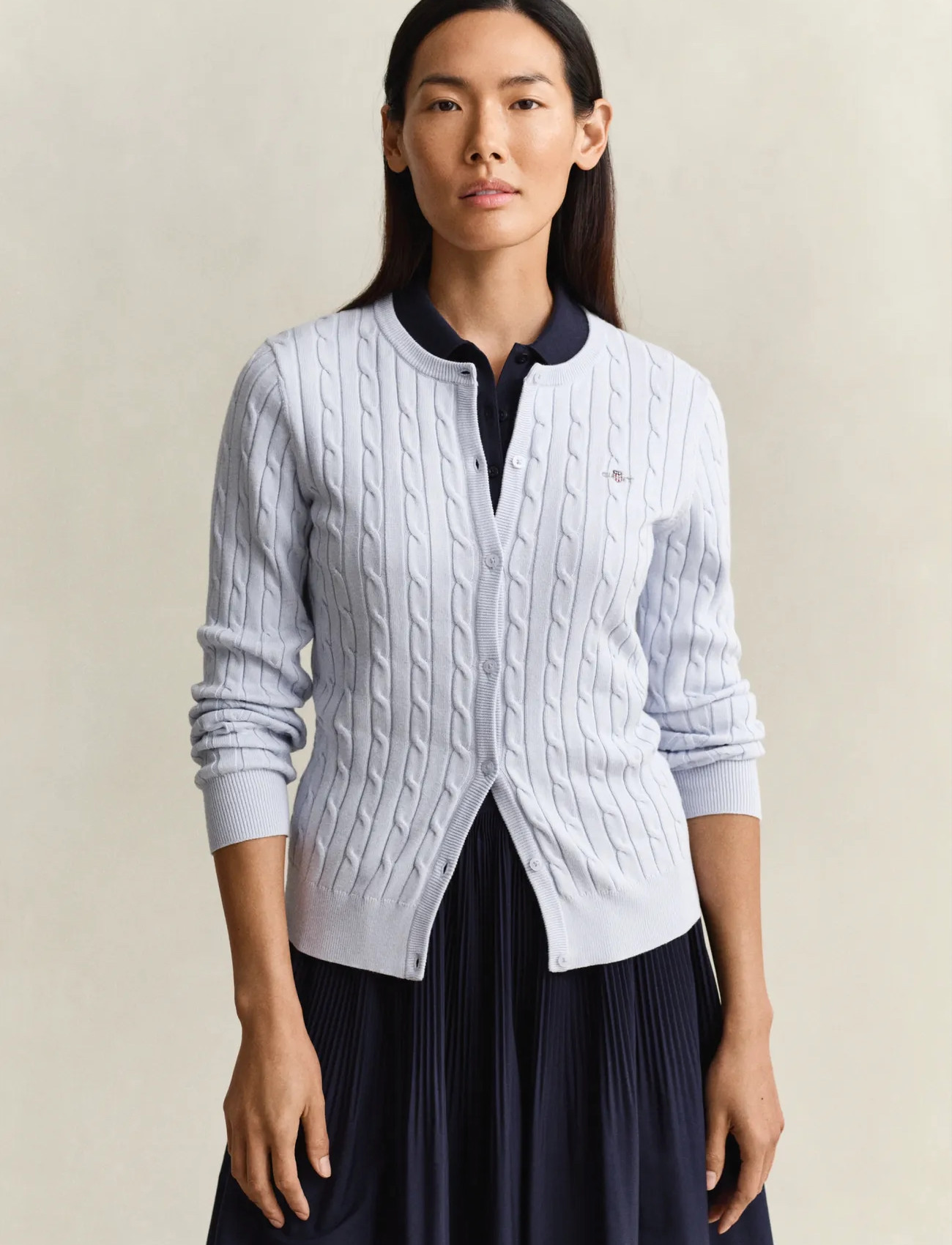 GANT Stretch Cotton Cable Cardigan - Navy - S