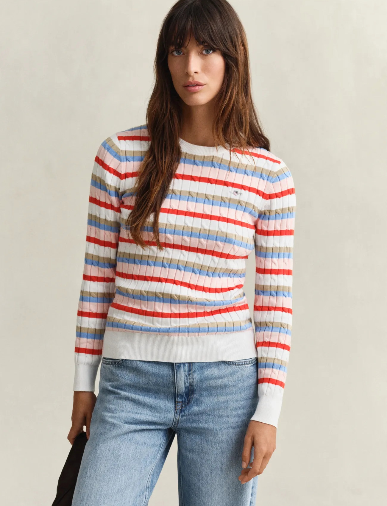 GANT Stretch Cotton Cable Stripe C-Neck - Multi/patterned - S
