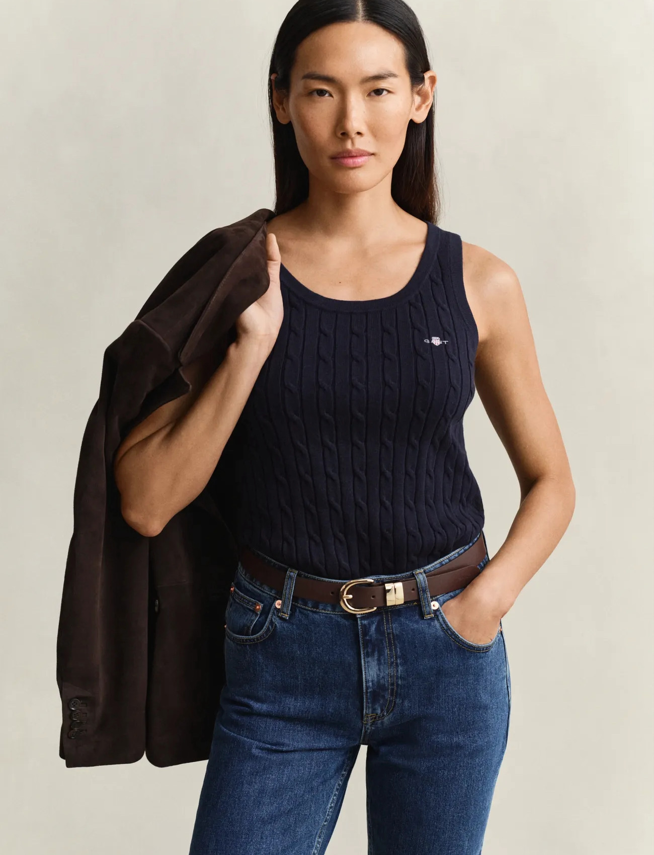 GANT Stretch Cotton Cable Tank Top - Navy - S