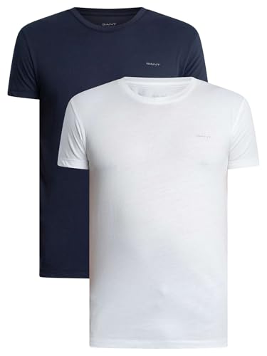 GANT Herr C-hals T-shirt 2-pack underkläder, marinblå/vit, standard (2-pack), Marinblå/vit, one size