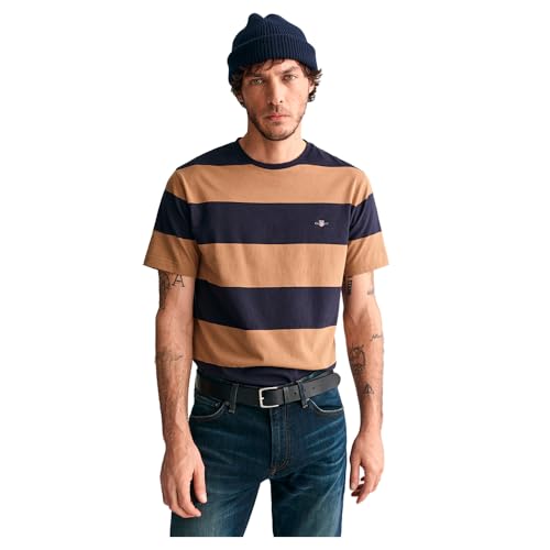 GANT Herr bar randig Ss T-shirt, Varm kaki, M