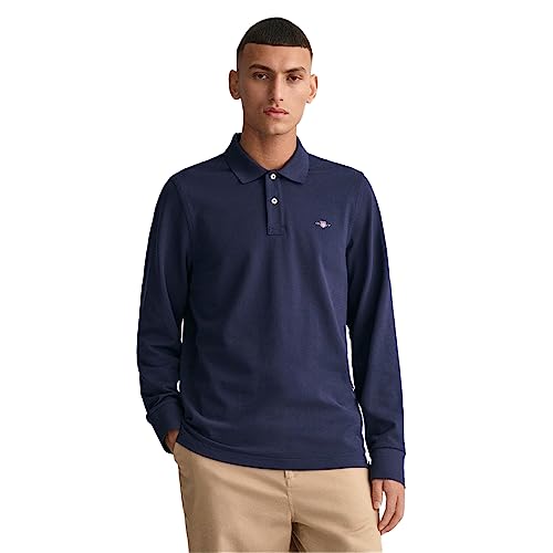 GANT Herr REG Shield LS Pique Rugger pikétröja, Evening Blue, standard, Kvällsblå, XS