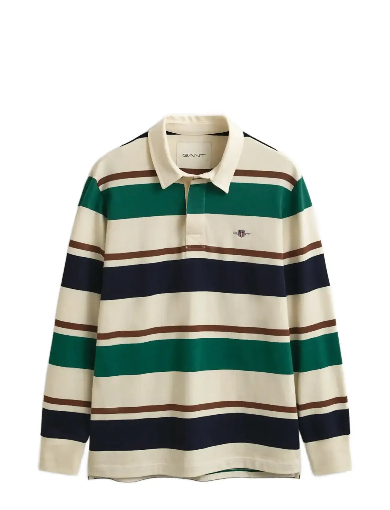 Gant Multi Stripe Heavy Rugger Long Sleeved Polo Shirt (Herr)