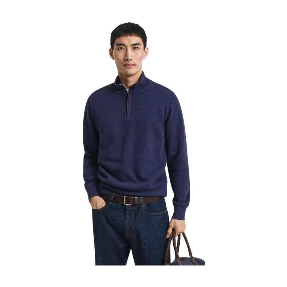 Gant, Stickade Tröjor , Herr, XL, Marine Half-Zip Tröja
