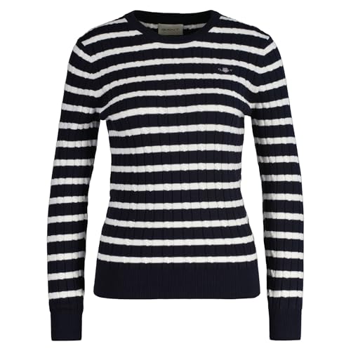 GANT STRETCH COTTON CABLE Stripe C-NECK, Kvällsblå, S