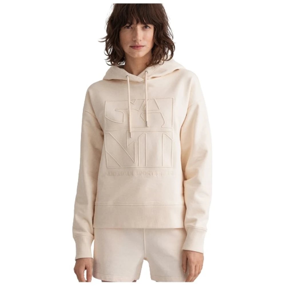 Gant, Sweatshirts & Hoodies , Dam, M, Bomull, Tone-on-Tone Logo Hooded Sweatshirt
