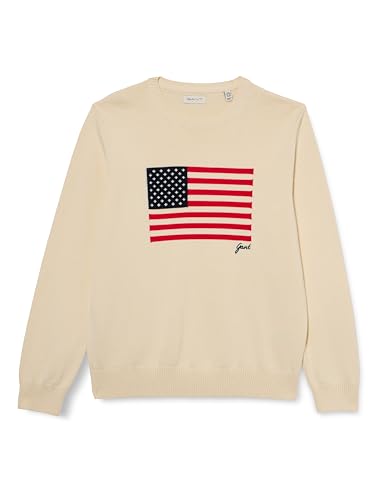 GANT Unisex barn flagga stickad C-hals tröja, kräm, 122-128