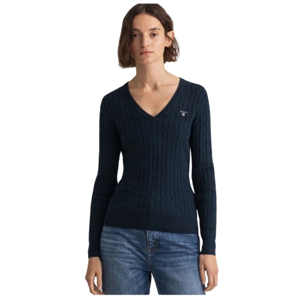 Gant, Stickade Tröjor , Dam, S, Bomull, Twisted Cotton V-Neck Tröja