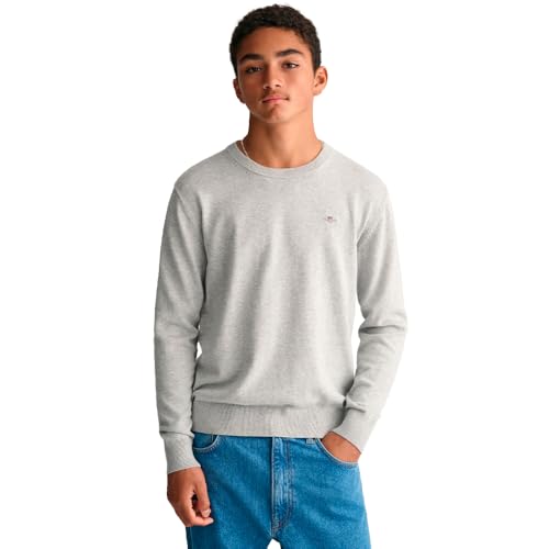 GANT Unisex barnsköld klassisk bomull C-hals tröja, Ljusgrå melange, 134-140