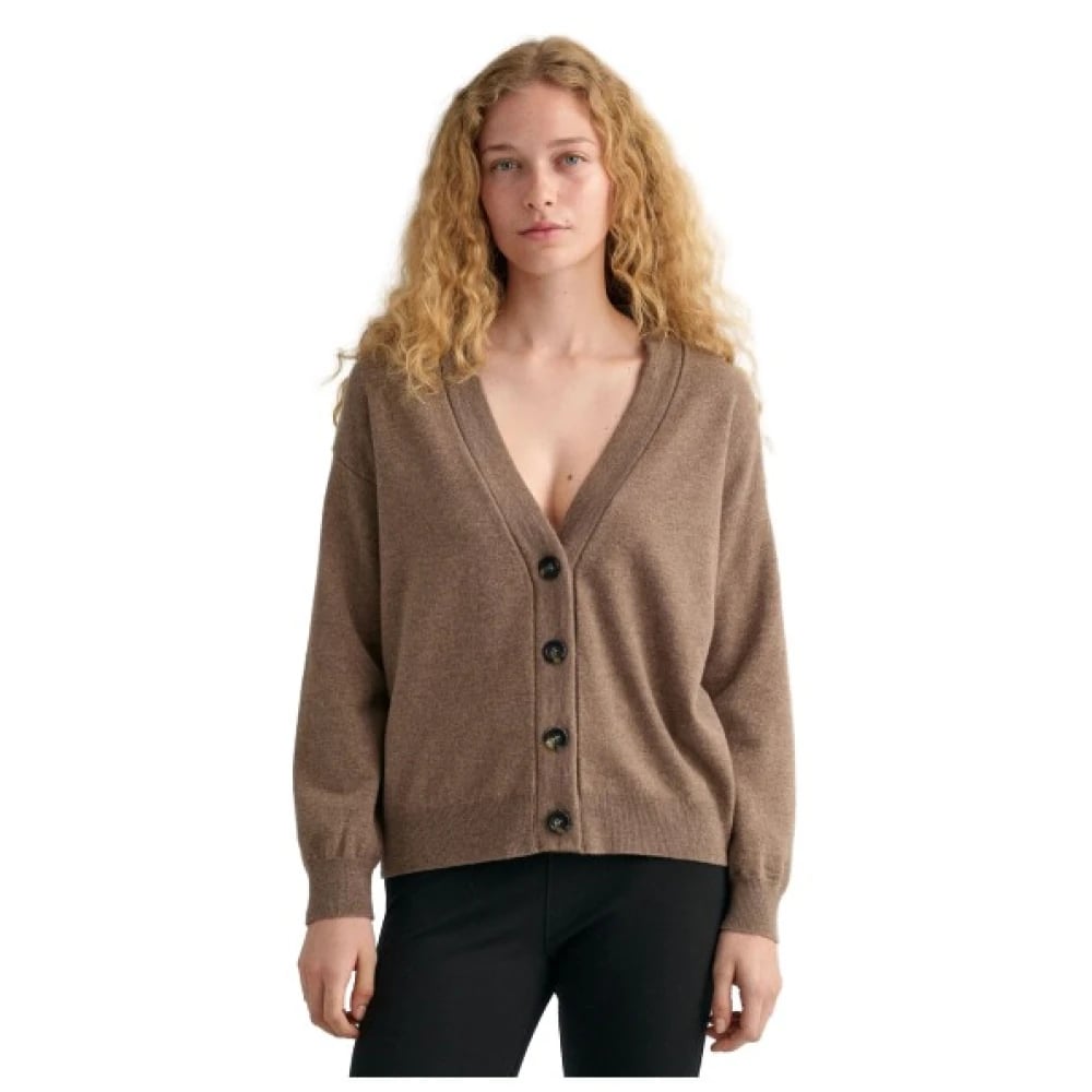 GANT Dam extra fina lambsull Blend V-ringad tröja, Varm kaki, XL