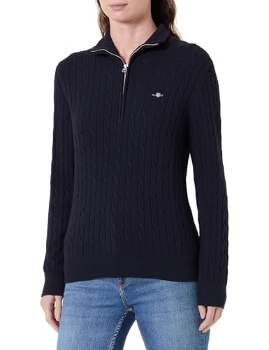 GANT Dam stretch bomull kabel halv dragkedja tröja, Kvällsblå, S