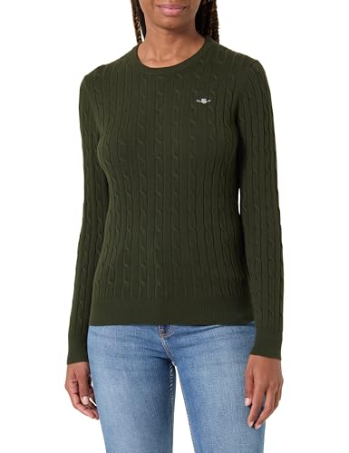 GANT Dam stretch bomull kabel C-hals tröja, Grön lagoon, L